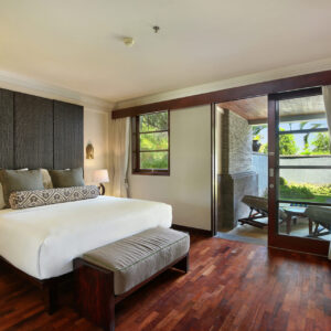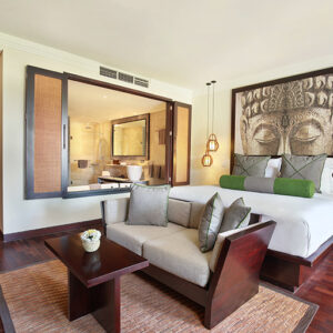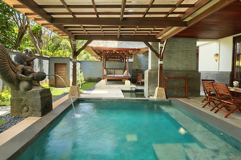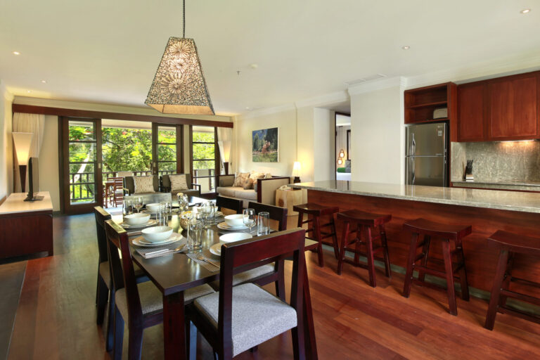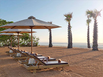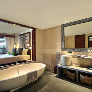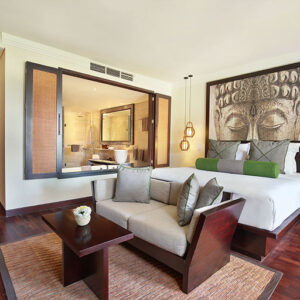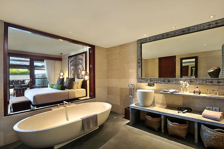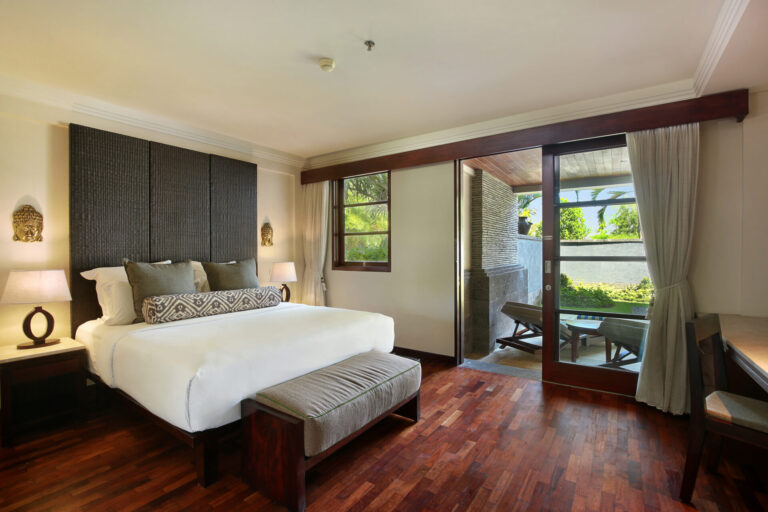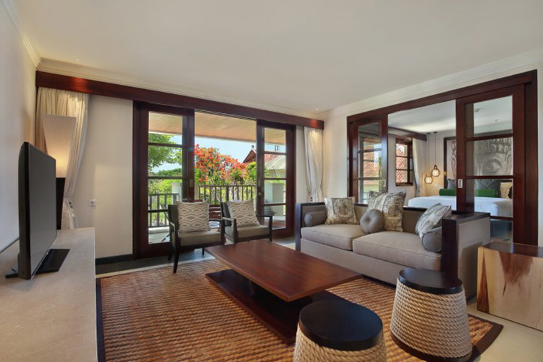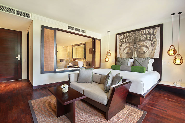 Only 45 minutes away from the famous Uluwatu Temple. It features beautifully appointed rooms and suites, many with garden views. The hotel offers international resort facilities including private beach club, pool lagoon, spa, sauna, massage, fitness center, and a kids club.
